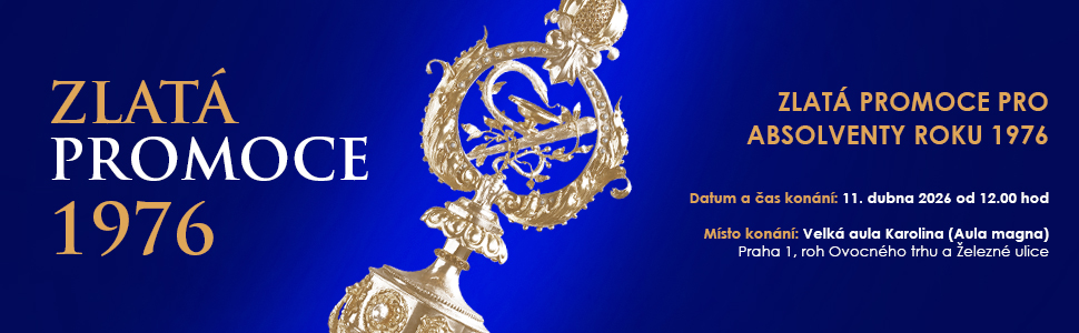 Dovolujeme si Vás a Vaše rodiny pozvat na slavnostní Zlatou promoci absolventů z roku 1976. Připomeňte si jeden z nevýznamnějších okamžiků svého života, zavzpomínejte na studijní léta a potkejte se se svými spolužáky a lektory. Datum a konání: 11.dubna 2026 od 12.00 hod. Místo konání: Velká aula Karolina (Aula magna)